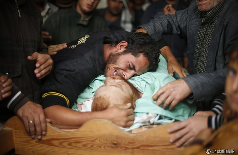 照片中的男子痛哭趴在自己的親友哈拉瓦(Fadel Halawa)身上,32歲的哈拉瓦在日前被以色列警方射殺。