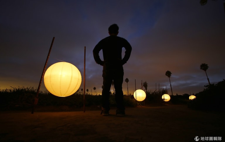 照片中的人影是千野誠(Makoto Chino),他站在自家位在加州聖塔菲一帶的菜園中,這張照片攝於8月14日的時候,當時千野一家人要過「盂蘭盆節」於是他們在菜園點亮燈籠,象徵迎接祖先回來。