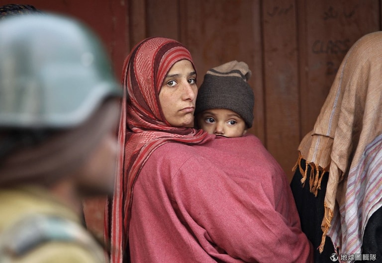 民眾正在投票所外等投票。印度北邊的查謨和喀什米爾邦(Jammu Kashmir)舉行大選,25號這天是5階段投票中的第1階段,預計選舉會在12月20日正式結束。