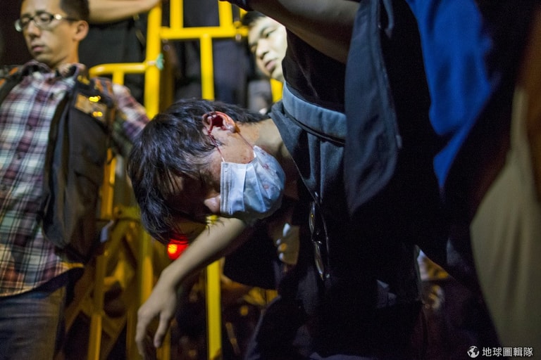 上周末港警和示威者們發生激烈衝突,有民眾滿頭鮮血被緊急架走
