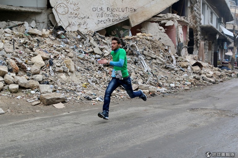 阿勒坡大城中,居民舉辦了賽跑活動。