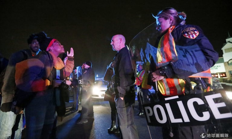 示威者們和警方發生衝突,民眾不滿陪審團對黑人青年布朗遭警殺的判決,於是發動連日的抗議行動。