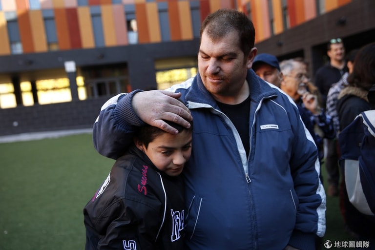 得知暫時不用無家可歸後,44歲的吉拉多(Jose Antonio Giraldo Zacarias)拍了拍12歲兒子的頭。