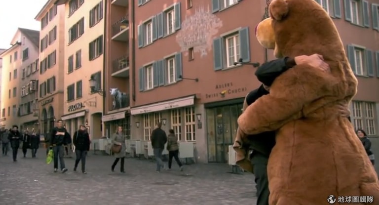 Pro Infirmis 是一個來自瑞士的公益團體,他們為身心障礙者發聲。他們請 Fabian 穿上道具服與路人擁抱,擁抱的背後,其實是我們都難以去承認的秘密。