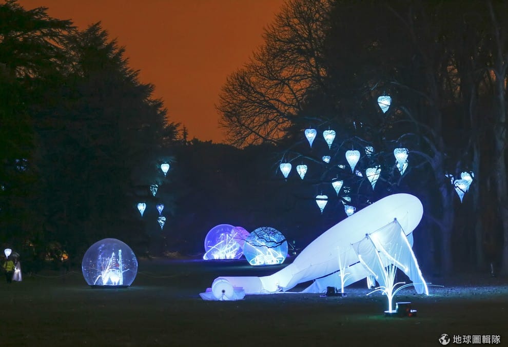 法國里昂(Lyon)正在舉辦燈光節,照片中是藝術家Christophe Martine在「冬日花園」(Jardin d'Hiver)所放的裝置藝術品。