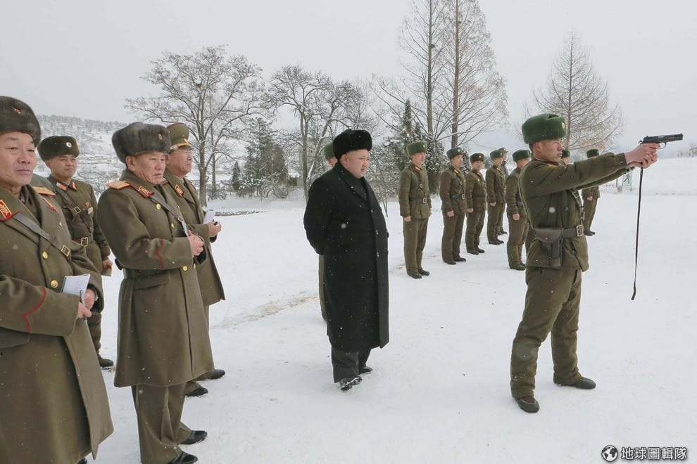 照片中可見北韓領導人金正恩正在訪視朝鮮人民軍。