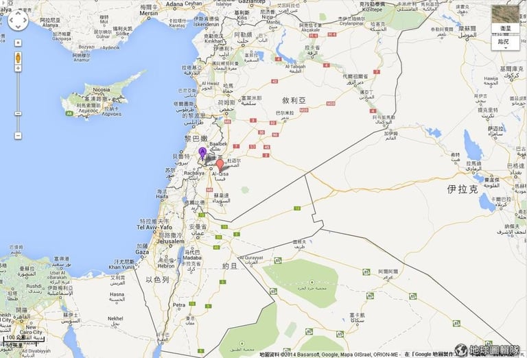 紅色標籤是這次被空襲的大馬士革國際機場;另一個被攻擊的迪馬斯是個小鎮,靠近敘利亞和黎巴嫩的邊界。