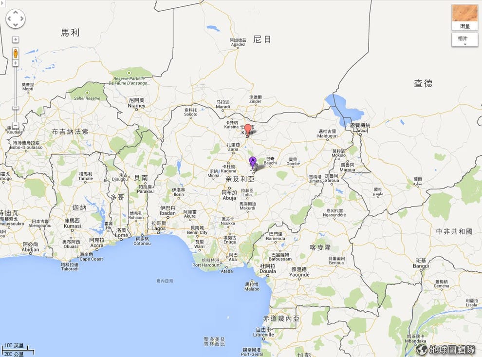 圖中紫色地點就是這次市場遭炸的喬斯,紅色點是11月底發生清真寺遭恐怖份子攻擊的卡諾。