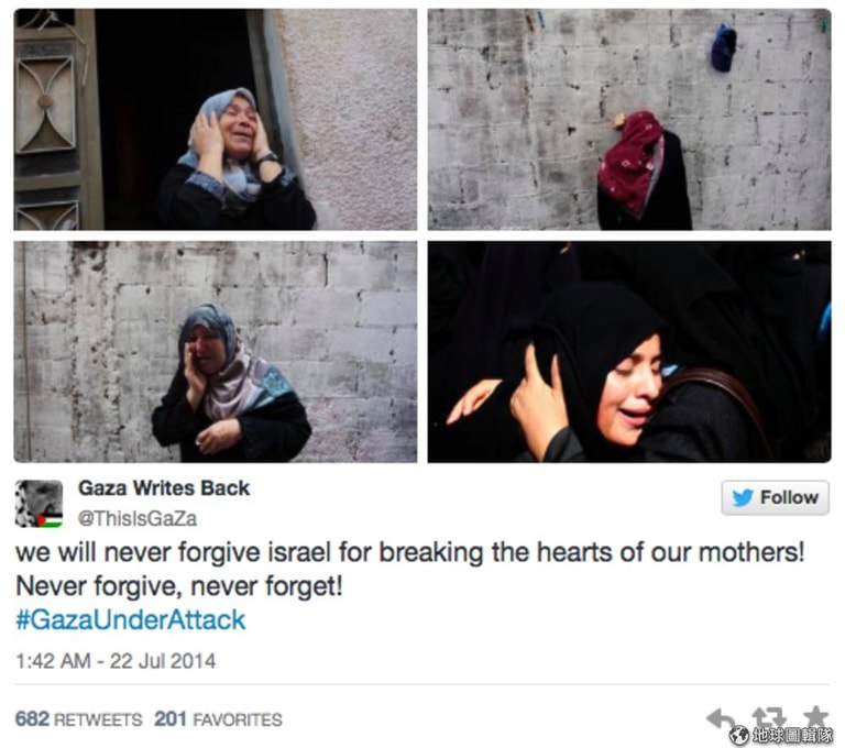 今年七月,在以色列和巴勒斯坦的血腥衝突中,加薩在社群媒體上站穩住腳,舉例來說,截至七月為止,標籤 #GazaUnderAttack 已經被標注在 四百萬則推特發文,然而標籤 #IsraelUnderFire 只被標注了二十萬次。