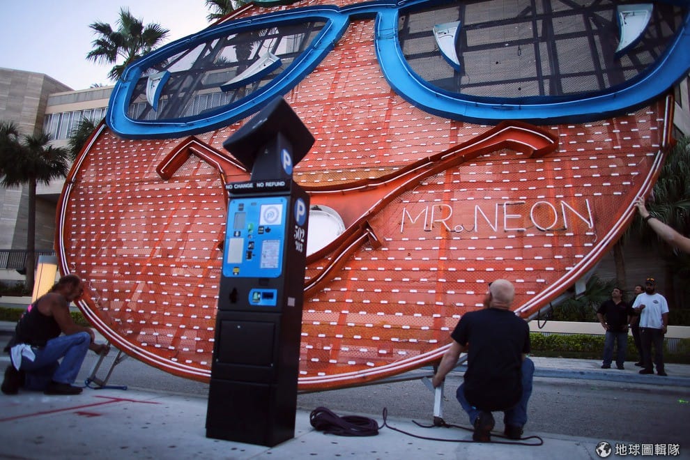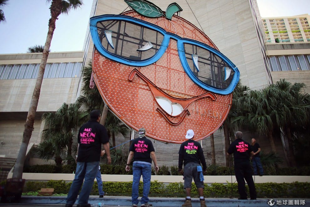 不管甚麼「大橘子名號之爭」,光看這笑容好特別的霓虹燈飾,就讓人好開心啊!圖片來源:Joe Raedle/Getty Images