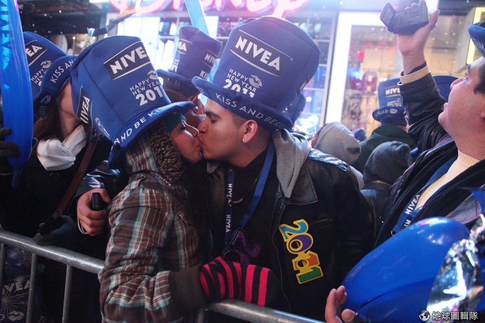 三天後,全地球的人都要一起迎向2013年囉!記得要給親愛的家人朋友來個擁抱和親吻!圖片來源:Astrid Stawiarz/Getty Images