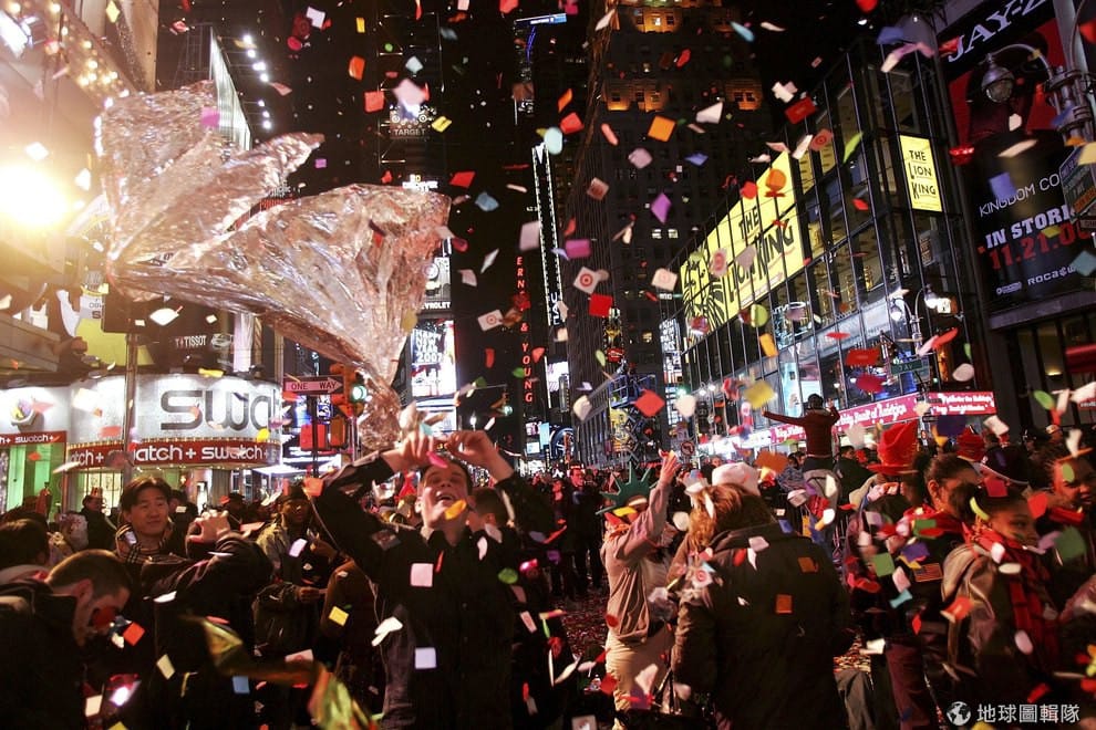 今年,這個美麗的水晶球隨著科技進步也採用不同的材質組成,早年是運用上百顆的白熾燈泡,現在則採用LED等囉!圖片來源:Mario Tama/Getty Images