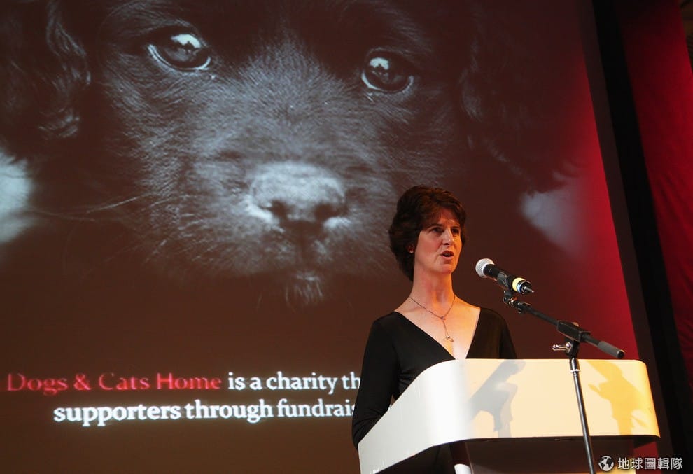 照片中是巴特西動物收容中心的執行長巴洛(Jan Barlow),她在2009年的一場會議中介紹收容中心。圖片來源:Chris Jackson/Getty Images