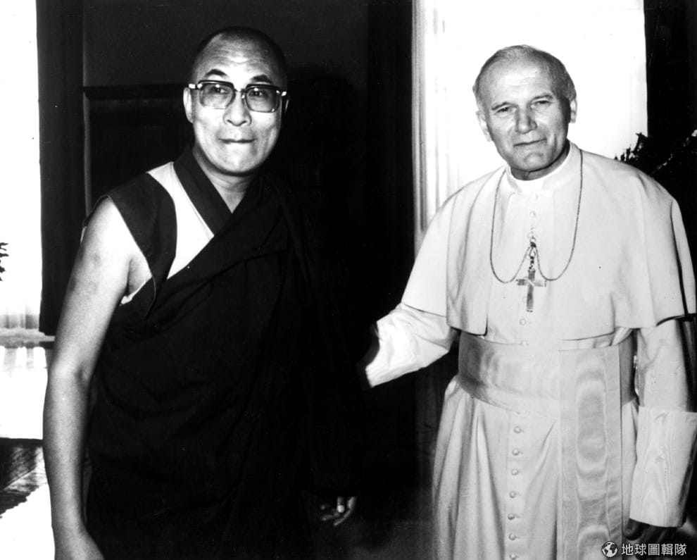 1982年時,47歲的達賴喇嘛曾與當時教宗若望保祿二世( Pope John Paul II)見面。