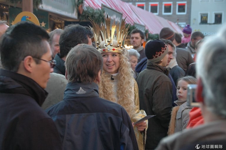 在德國,送小朋友聖誕禮物的還有另一個神秘人物,他就是耶穌小孩(Christkind),耶穌小孩並不是我們常說的耶穌,他是一個有著金色秀髮的女性天使,跟聖誕老公公一樣很會穿梭在世界各地送禮物。