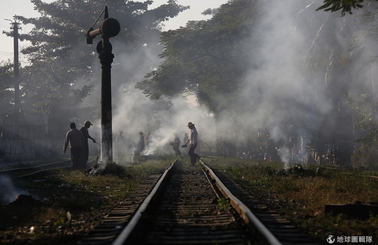 緬甸的高林區(Kawlin),可以看到民眾穿越鐵路逛市集去。