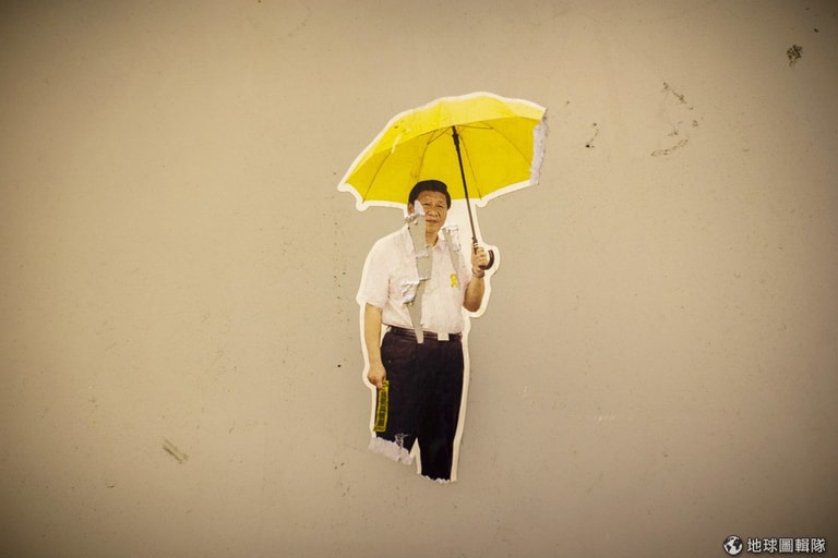 香港的金鐘區(Admiralty)內,原本聚集雨傘革命群眾的陣地已經沒有人影,但可以在牆上見到民眾特意貼成的「習近平撐傘圖」。習近平是中國現任領導人。