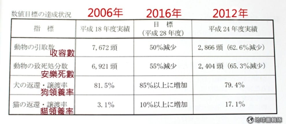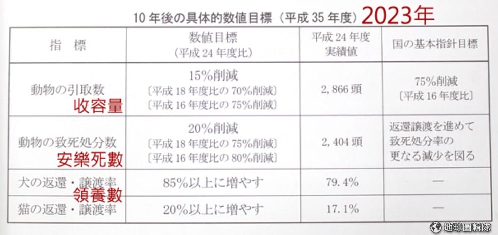 東京都製作的東京都動物愛護管理推進計畫手冊內,清楚記載前一次10年計畫預計達到的目標,竟提早了4年達成。翻攝自東京都動物愛護管理推進計畫手冊 。