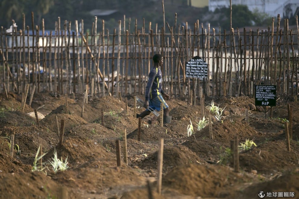 挖墳的工人走過墓園。