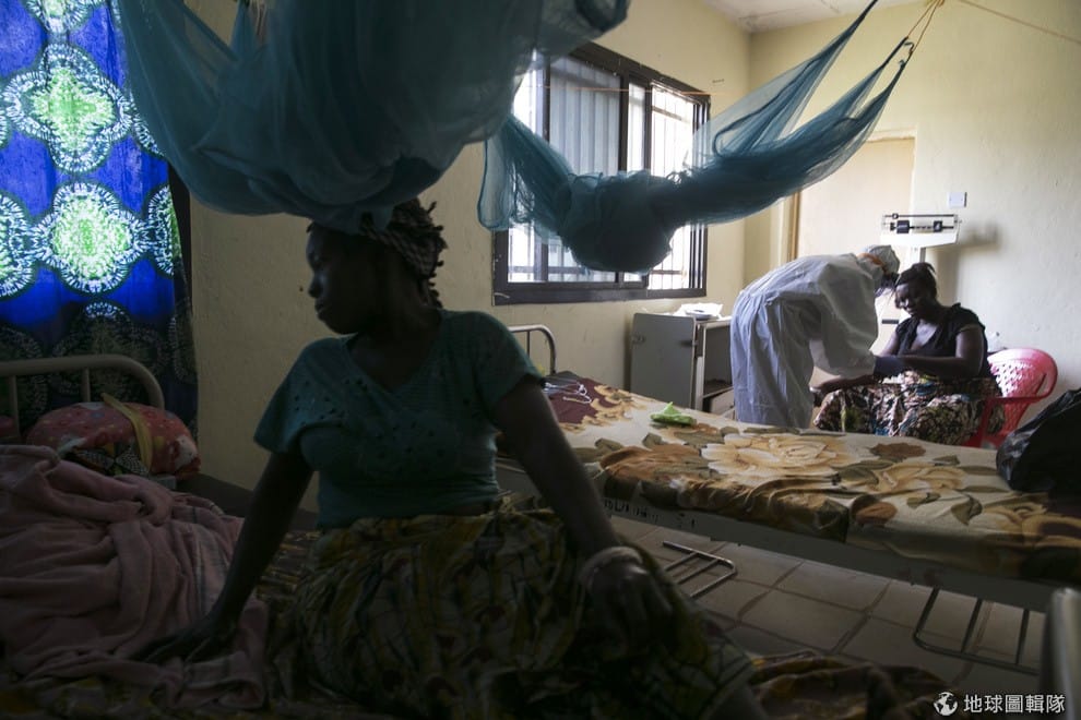 科諾州當地的醫院中,醫護人員正在聆聽孕婦的狀況。目前獅子山的伊波拉病例仍在增加,為了以防萬一,現在當地醫院的人員會換上全副武裝來看診。