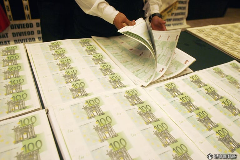 圖為警方查獲大量的偽造歐元,其中又以面額20和50的歐元最容易流通。