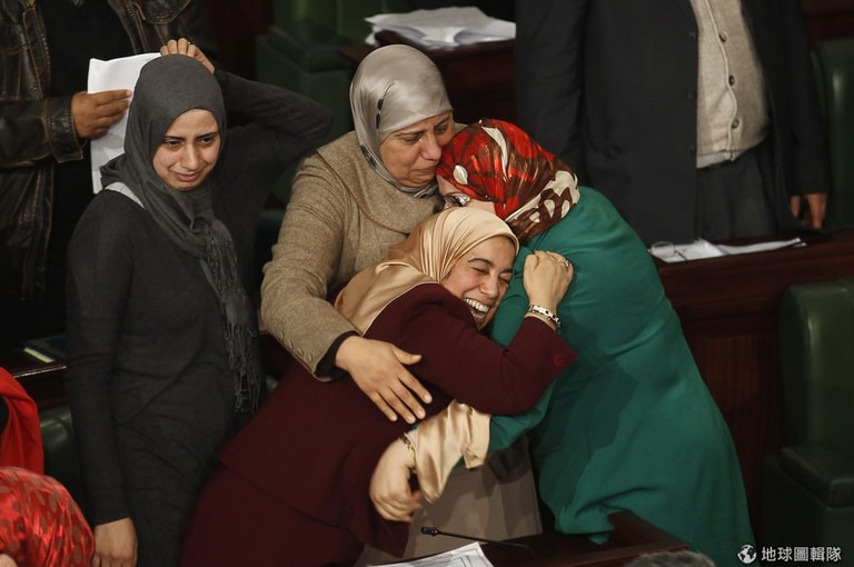 2014年年初,突尼西亞的國會成員開心地抱在一起,他們剛通過了新憲法。
