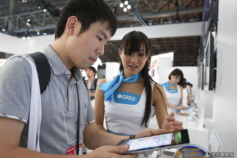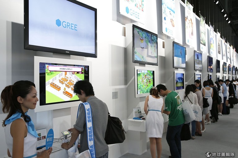 事實上,讓遊戲迷心甘情願掏錢的電玩產業,一直是許多娛樂廠商覬覦的大餅;每年電玩展內的規劃和規模就可以看到遊戲產業的消長,例如原本深受電玩迷歡迎的《Final Fantasy》系列,在今年的攤位上比起往年縮小許多,而原本在2010電玩展中沒有出現過的手機遊戲網站Gree,卻在今年增添了許多攤位。