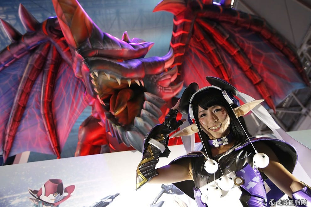 gettyimages笑容可掬的Show girl,她一身《夢幻之星2》(Phantasy Star Online 2)的裝扮讓攝影師捕捉風采。圖片來源:2012/09/20;Kiyoshi Ota/Getty Images