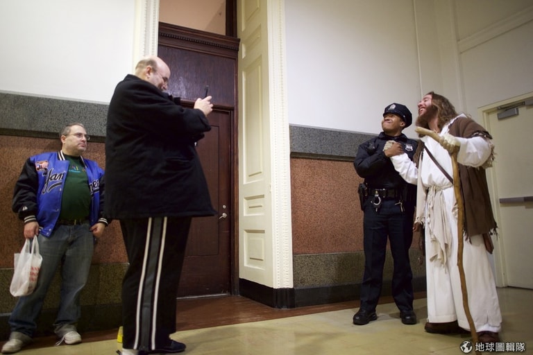 當你看著「費城耶穌」走在大街上時,有的人是驚訝地瞪著他看,但大部分的民眾都是興奮地和他擁抱或是擊掌而過,漸漸地,格蘭特成了費城的明星,只要他走過的地方,都可以見到民眾搶著要求和他合照。