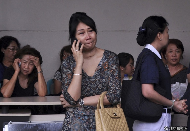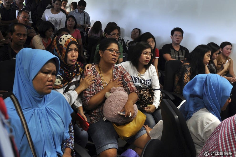 心急如焚的家屬因等不到亞航失蹤班機的進一步消息而掩面哭泣。