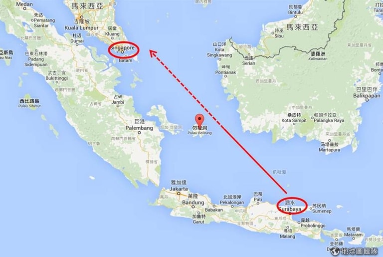 搜救區域靠近印尼勿里洞島(Belitung island)。