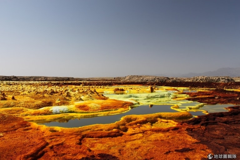 喜歡高溫的細菌製造出橘色、黃色和紅色素,讓溫泉就像擦上了天然防曬霜,迷幻勾人。