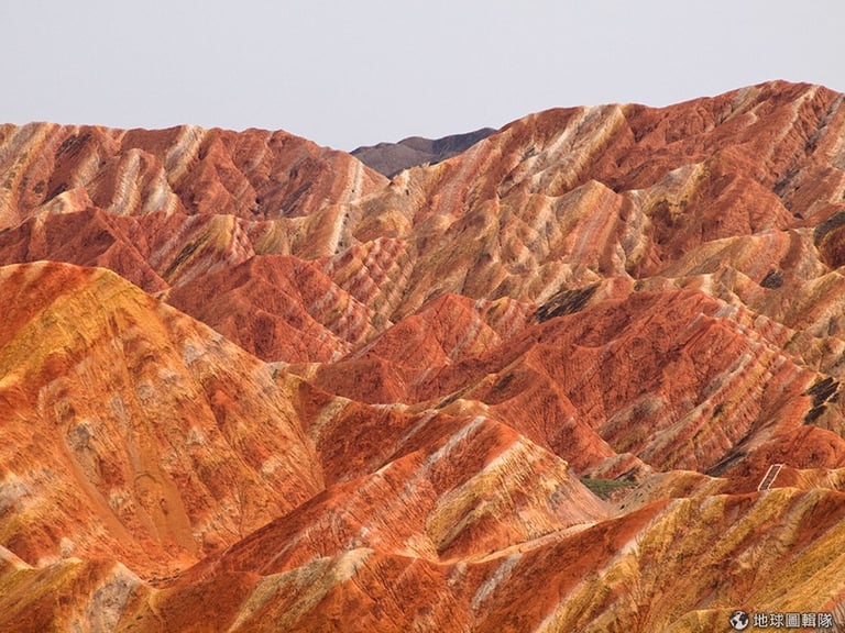 在中國甘肅省張掖市的丹霞以美麗的條紋狀岩層而聞名。豐富樸質的色彩來自于數百萬年的砂岩與礦物質。