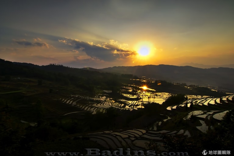 中國雲南省元陽縣的水稻梯田宛如鏡子一般透明清澈,是場強烈的視覺饗宴。哈尼族的祖先們1000多年前在這裡胼手胝足地建設了梯田並種下了紅水稻。梯田的顏色隨季節而變。冬春兩季,稻田因為被水淹沒會呈現如鏡子般的水泊;而在夏天作物生長的季節,我們可以看到鮮豔的綠色讓梯田像絲帶飄揚在大地上。
