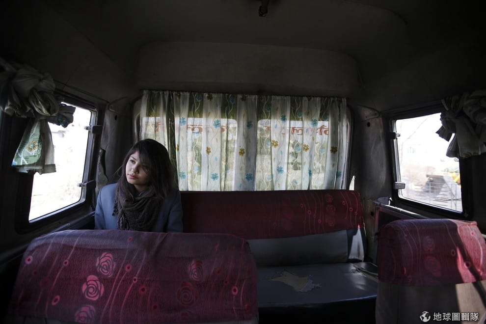 一名女子搭乘加德滿都的女性專用公車返家。政府設置女性專用公車,企圖減少女性乘客遭性騷擾的機率,希望大眾能搭乘大眾運輸。第一波上路的女性專用公車有4台,每台有16個座位,在早上和晚上的尖峰時刻營運。