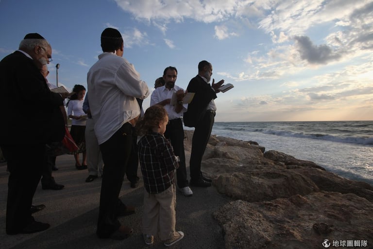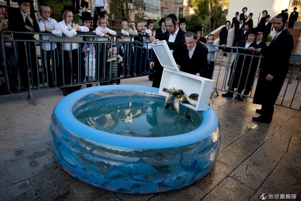 對猶太人來說,他們的新年(Rosh Hashanah)是每年9月左右開始,新年開始的頭2天,猶太人會在下午來到河邊或是湖畔等等有活水的地方,翻翻衣服口袋,代表把罪惡丟入水中,接下來10天,就進入了他們的「贖罪日」活動。