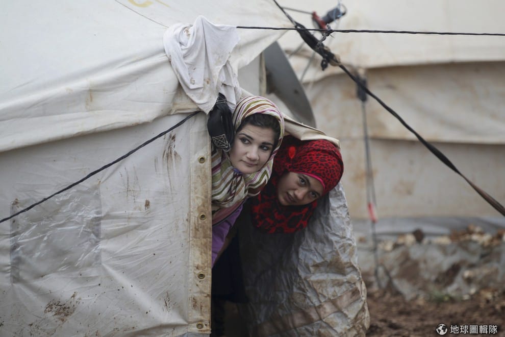 兩名敘利亞女孩從難民營的帳篷外探出頭來。時值暴風雪侵襲中東,黎巴嫩、敘利亞、土耳其、約旦、以色列和加薩走廊都有不少災情傳出。而敘利亞難民也煩惱簡陋的安置所能否抵擋得住暴雪與低溫。