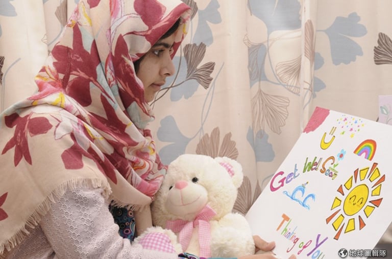 她是今年諾貝爾和平獎的最年輕得主,一個17歲的巴基斯坦少女——馬拉拉 Malala yoursafzai。馬拉拉至12歲開始為巴基斯坦的女孩謀求福利,女孩們在激進組織的統治下不能去上學,她為教育奔走更引來了激進組織的槍殺。事後馬拉拉說:「他們最大的錯誤是反而教會我:就算他們傷害了我,死亡卻支持我,我活過來,因為死亡也站在我這一邊。」在今年諾貝爾得獎演講中發表: