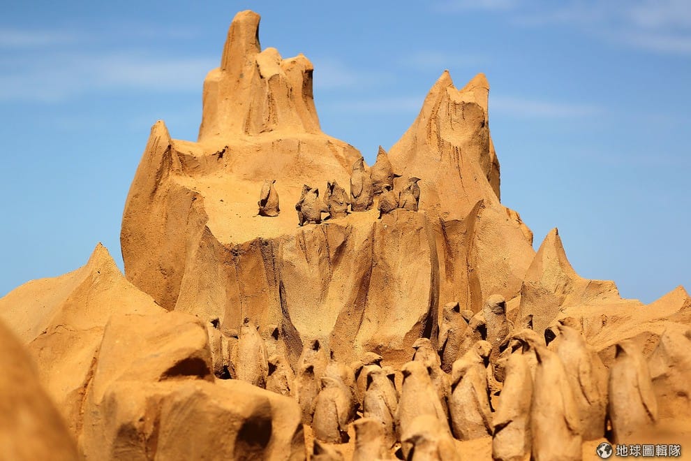 沙雕藝術家的巧手下,炎炎夏日也可以見到冰雪國度的企鵝大軍囉。圖片來源:Graham Denholm/Getty Images