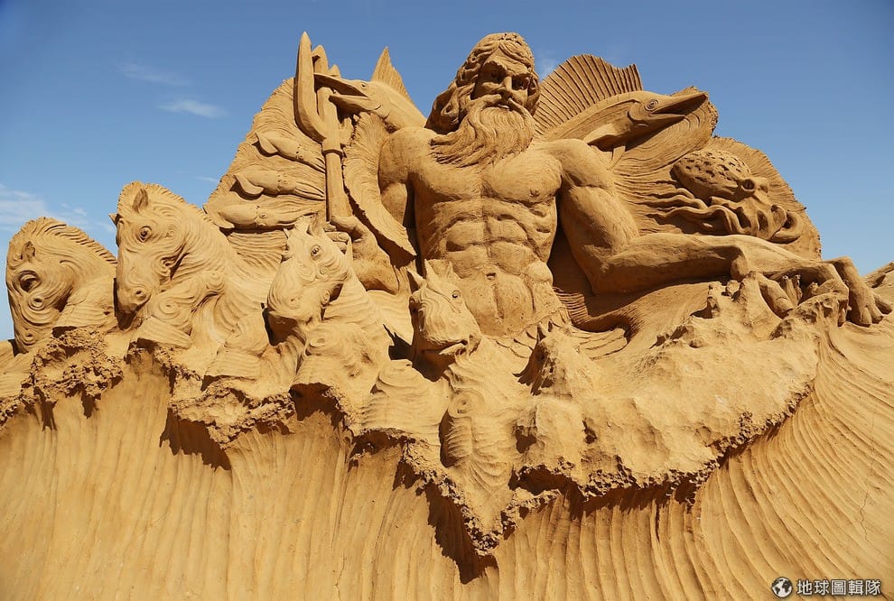 傳說中海神波賽頓所創的「亞特蘭提斯」(Atlantis),沙雕藝術家用他的觀點詮釋出這至今仍讓許多人著迷的失落大地。圖片來源:Graham Denholm/Getty Images