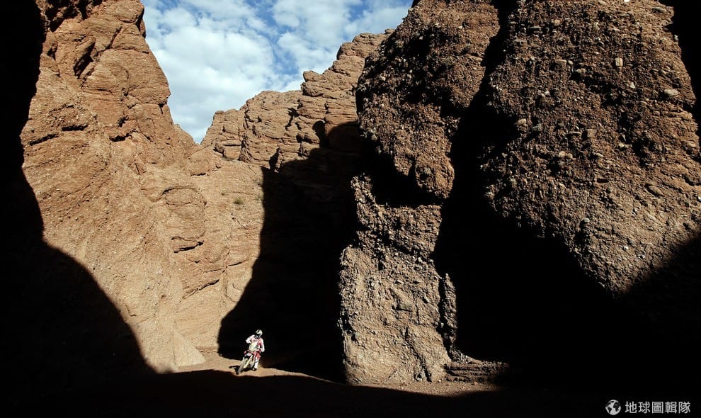 達卡越野拉力賽(Dakar Rally)已經來到第11階段,一名葡萄牙選手騎著越野摩托車,馳騁於壯麗的峽谷中。