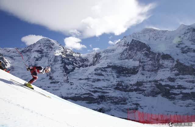 一名克羅埃西亞選手在著名的阿爾卑斯山脈為即將到來的男子高山滑雪世界杯速降賽( Alpine Skiing World Cup Downhill)加緊腳步練習。
