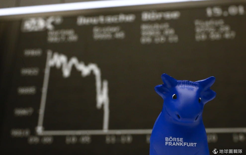 象徵法蘭克福股票交易所的藍色小牛公仔背後,是德國DAX指數。受到瑞士央行15號取消三年前所定,每1歐元兌1.2瑞士法郎之匯率限制,瑞士法郎正式和歐元脫鉤,造成全球市場一片混亂,瑞士法郎狂漲,歐洲股票與債券也受波及。