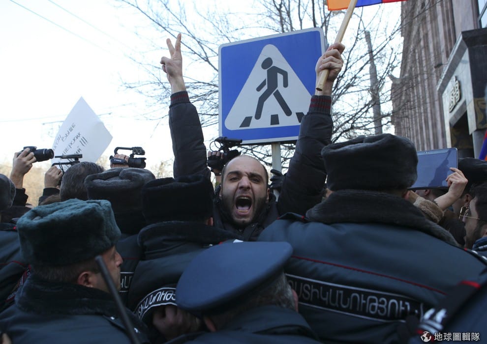 抗議民眾齊聚位於首都葉里溫(Yerevan)的俄國大使館,要求俄方交出滅門血案的兇手。俄國軍人佩米亞科夫(Valery Permyakov)在12號從俄國基地外出,前往離基地120公里的首都葉里溫殺害阿維迪斯楊(Avetisyan)一家六口,僅留一名6個月大的女嬰。佩米亞科夫說,他當時只是想進屋找點喝的。警方發現配米亞科夫遺留在屋內的軍靴和AK47步槍,循線將他逮捕歸案。