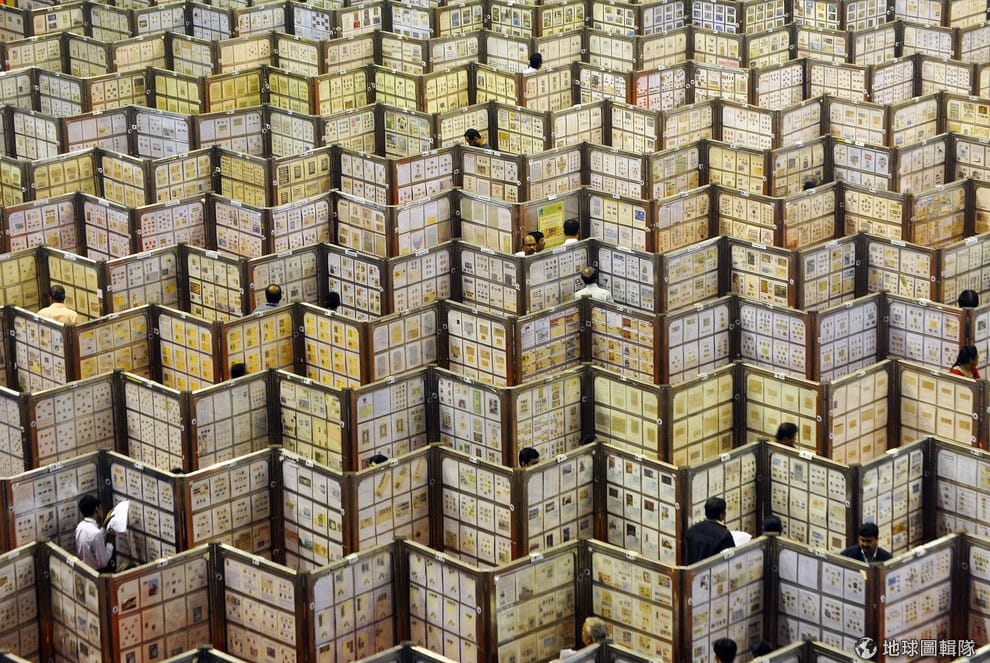 班加羅爾市舉辦了集郵展,遊客正在欣賞展覽上的郵票還有其他相關的展覽品。