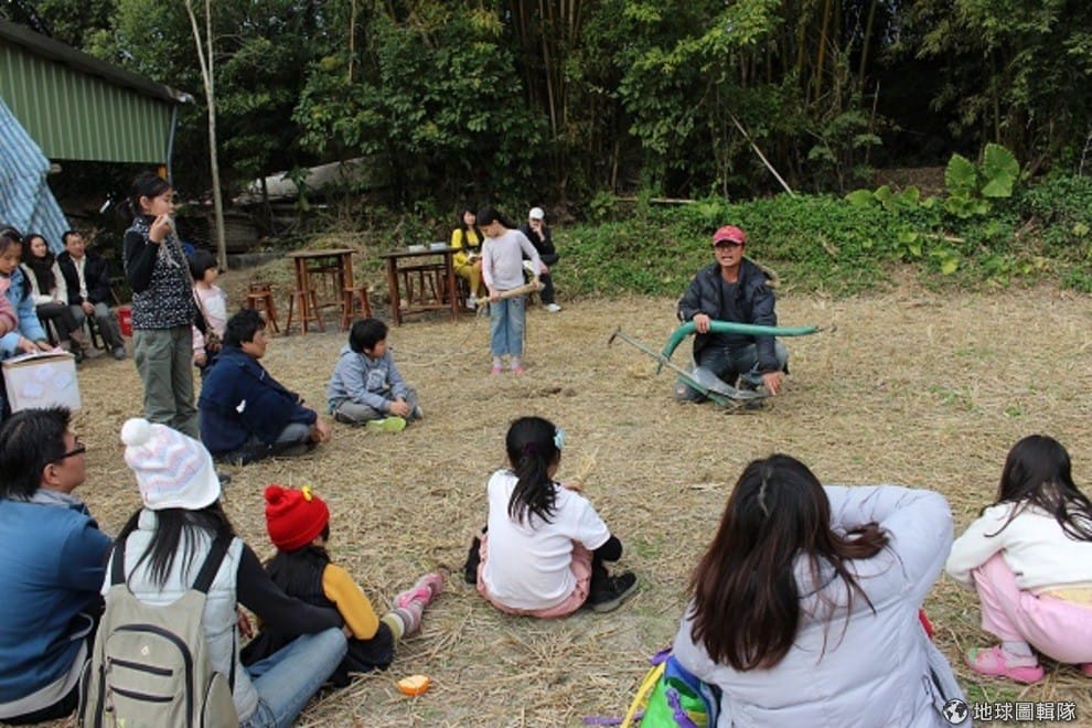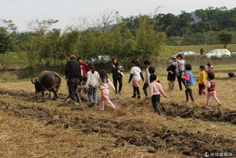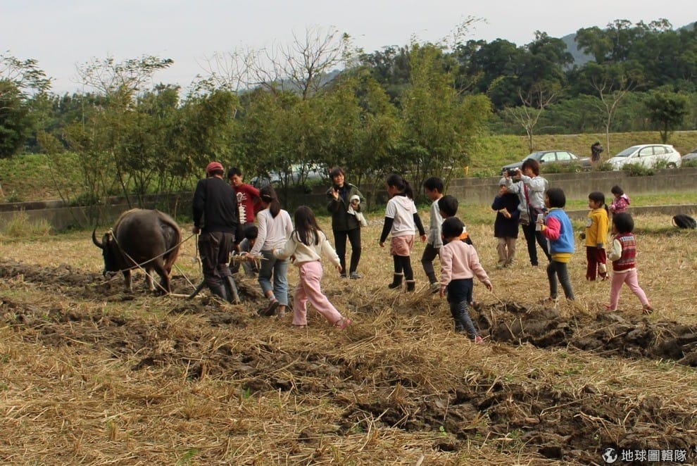水牛學校創辦人李春信向孩子們說明犁的功能。 李娉婷/攝