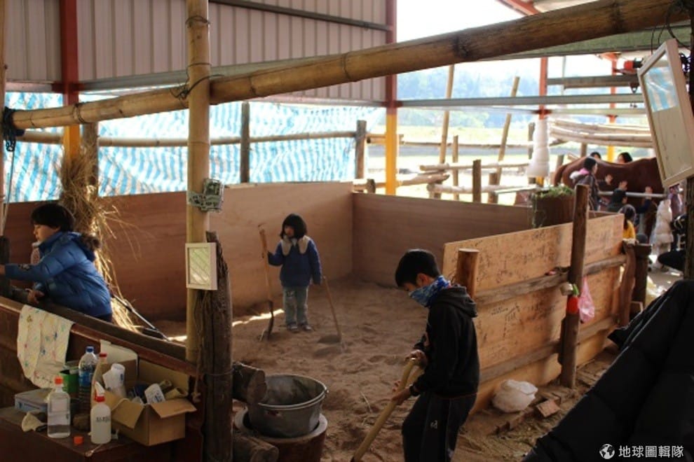 孩子們幫茱麗葉整理馬廄、清除糞便。李娉婷/攝