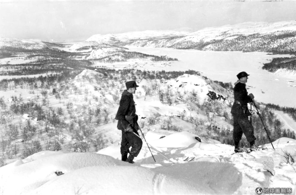 1940年時的照片可見到兩名士兵走在芬蘭的邊境。Photo credit: Municipal Archives of Trondheim