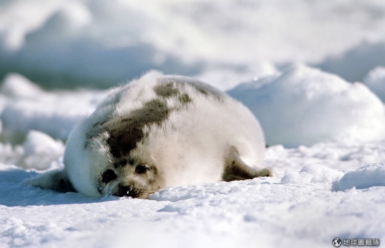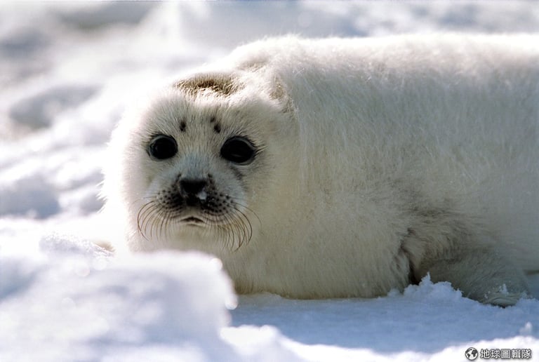 還沒有完全長大的小海豹,身上的毛皮仍然是全白帶有一點點斑點喔!圖片來源:Darren McCollester/Newsmakers