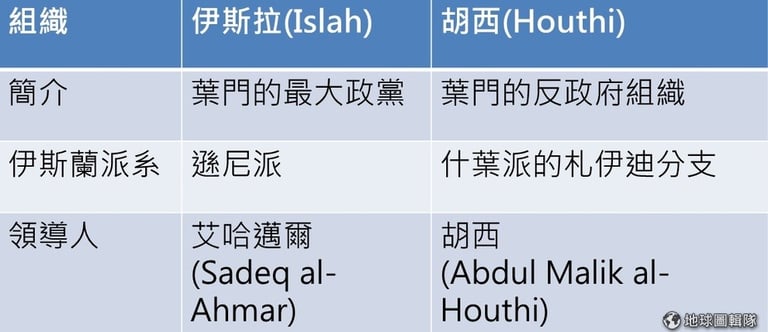 胡西組織跟葉門的最大政黨伊斯拉是敵對勢力。